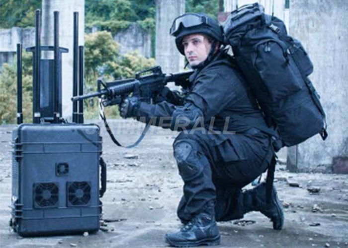 Este DDS de varias bandas todo-portátil que atasca características de sistema una vivienda rugosa del carretilla-estilo que es ligera, móvil y confiable. El dispositivo se equipa de 5 diversos módulos de interferencia, y la frecuencia de interferencia puede exceder 20 bandas de frecuencia. El módulo de la frecuencia de interferencia tiene un máximo de potencia de salida de 250-300 vatios.