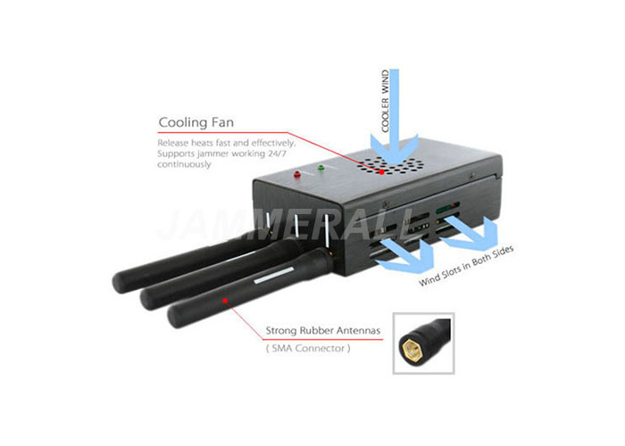 Esto es una emisión de GPS potente y portátil y del teléfono móvil. Puede ser lleva por todas partes y no sólo bloquea las señales de CDMA 851MHz-894MHz), de G/M (925MHz-960MHz), de DCS (1805MHz-1880MHz) y de PCS (1930MHz-1990 megaciclo), pero también atasca la señal de GPS (1500MHz-1600MHz). El radio de atasco de la gama para GPS es 15-20 metros y para el teléfono móvil están 5-10 metros. Con la batería del Ni-ion de DC8.4V/2600mA/h, el continuo usando tiempo es alrededor 90 minutos. También usted puede encargar en cualquier lugar del cargador de corriente alterna y encargar en su coche del cargador del coche.