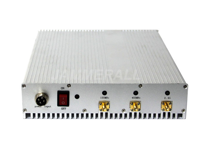 Mientras que el dispositivo de la emisión se diseña con 8 antenas, puede cortar señales de CDMA 850-894MHz, G/M 930-960MHz, DCS 1805-1850MHz, PCS 1900-1990MHz, 3G 2110-2170MHz, GPS 1500-1600MHz, WiFi 2400-2500MHz, VHF 135-175MHz y la frecuencia ultraelevada 400-470MHz, si es así usted puede alcanzar fácilmente sus metas. Debido al consumo de energía 12W, la distancia de interferencia de esta emisión puede ser hasta 25 metros, y el diseño de escritorio puede trabajar continuamente por 24 horas. Además, el diseñador también consideraba el país del uso, así que esta nueva emisión del diseño se puede utilizar por todo el mundo.